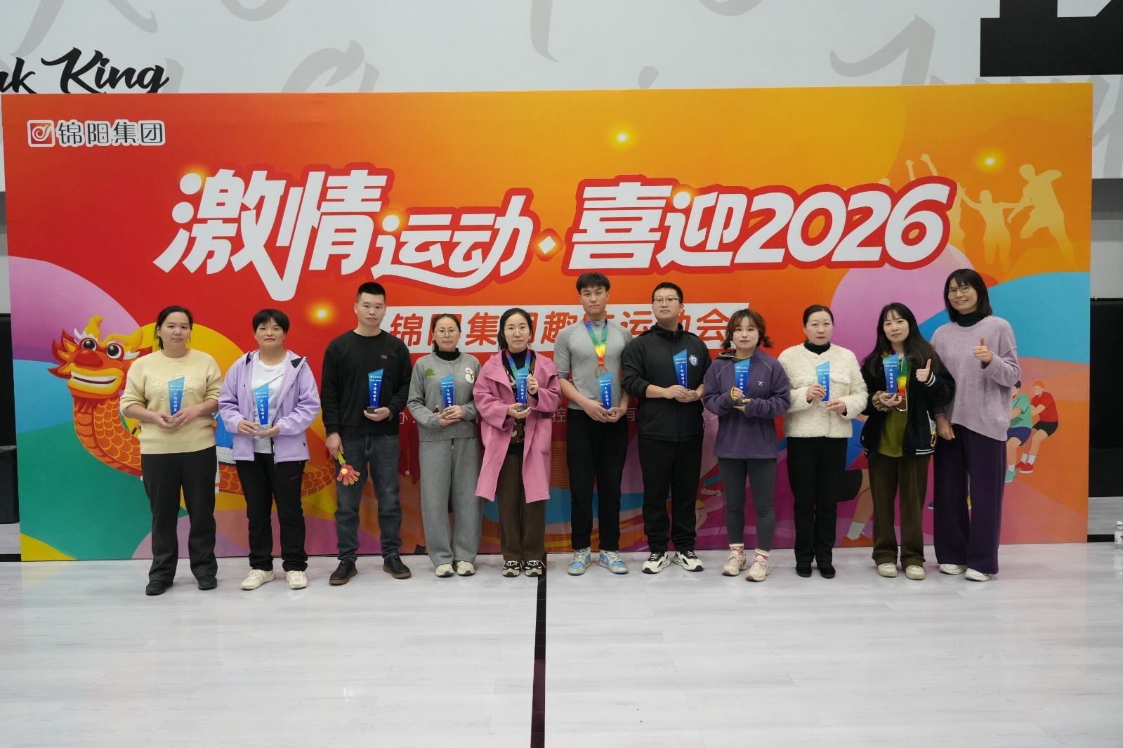 岁末将至,华章日新。为迎接2026年的到来,展现集团昂扬向上的精神风貌,丰富员工业余文化生活,增强团队凝聚力与协作精神,营造全员参与、团结进取、健康向上的企业文化氛围,12月30日,锦阳工会联合锦阳团委举办的“激情运动,喜迎2026”趣味运动会在DK篮球馆田径场地热力开赛。 冬日午后,阳光和煦,DK篮球馆内气氛热烈。下午13时整,伴随着激昂的开场曲,来自集团总部、各分公司及子公司的10支代表队精神抖擞地依次入场,展现出锦阳人蓬勃向上的精神状态。 现场掌声与欢呼声不断,瞬间点燃了全场的运动激情。开幕式上,集团党委书记周星驰发表了热情洋溢的致辞,勉励全体运动员赛出风格、赛出水平、赛出友谊,并预祝运动会圆满成功。 载着期许与热忱,伴着协作与欢笑,锦阳集团迎新趣味运动会正式拉开帷幕! 团队合作赛:凝心聚力显担当 团队项目的赛场上,各代表队充分发挥协作精神,每一个环节都凝聚着集体的智慧与力量。 “疯狂三轮车往返接力赛”上四名队员默契交接、奋力疾驰,上演速度与协作的比拼;“旱地龙舟竞速赛”中大家步调一致、口号整齐,尽显人心齐,泰山移的协作之力;“坦克履带竞速赛”里队员们同步迈步、灵活调整,生动诠释团结内涵。 “力拔山兮” 拔河挑战赛中各队更是咬紧牙关、齐心协力,将团队的力量发挥到极致,每一次拉扯都凝聚着坚韧不拔的斗志。 赛场上,欢呼声、加油声此起彼伏,将团队合作的氛围推向高潮,也充分展现了协作共赢、永不言败的锦阳精神风貌。 个人竞技赛:挑战自我展风采 个人挑战项目区同样热闹非凡,大家手持《个人挑战积分卡》,自由穿梭于四个项目之间。 “极速心跳”项目中,绳影翻飞,考验的是耐力和节奏;“钢铁核心”的参赛者们咬紧牙关,坚持完成高强度的挑战,充分展现锦阳人坚韧不拔的意志;“马力全开”深蹲区,大家在60秒内挑战极限,汗水尽情挥洒;而“乒乓暴雨”中,选手们全神贯注,快速挥拍,小小的乒乓球在球桌上来回穿梭,展现出敏捷的身手和顽强的斗志。 每一个项目都充满了挑战,但锦阳人毫不畏惧,以饱满的热情和昂扬的斗志投入到比赛中,不断挑战自我、超越自我,尽情展现个人风采。 随着各项比赛的圆满结束,运动会进入激动人心的荣誉颁奖环节。获奖队伍手捧奖杯和奖牌,脸上洋溢着自豪与喜悦。每